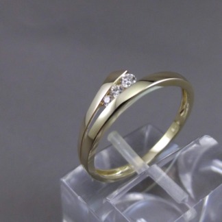 14 krt massieve bicolor ring met briljant. Geel- en witgoud met 2 x 0,05 ct H/Si in gladomzetting.