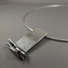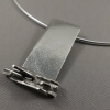 Zilveren fantasiehanger geoxideerd, ca 37 x 22 mm incl. plat omega coller 2,5 mm, lengte 45 cm.